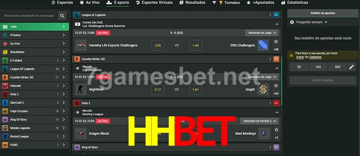O HHbet oferece uma grande seleção de opções de apostas em e-sports com probabilidades competitivas